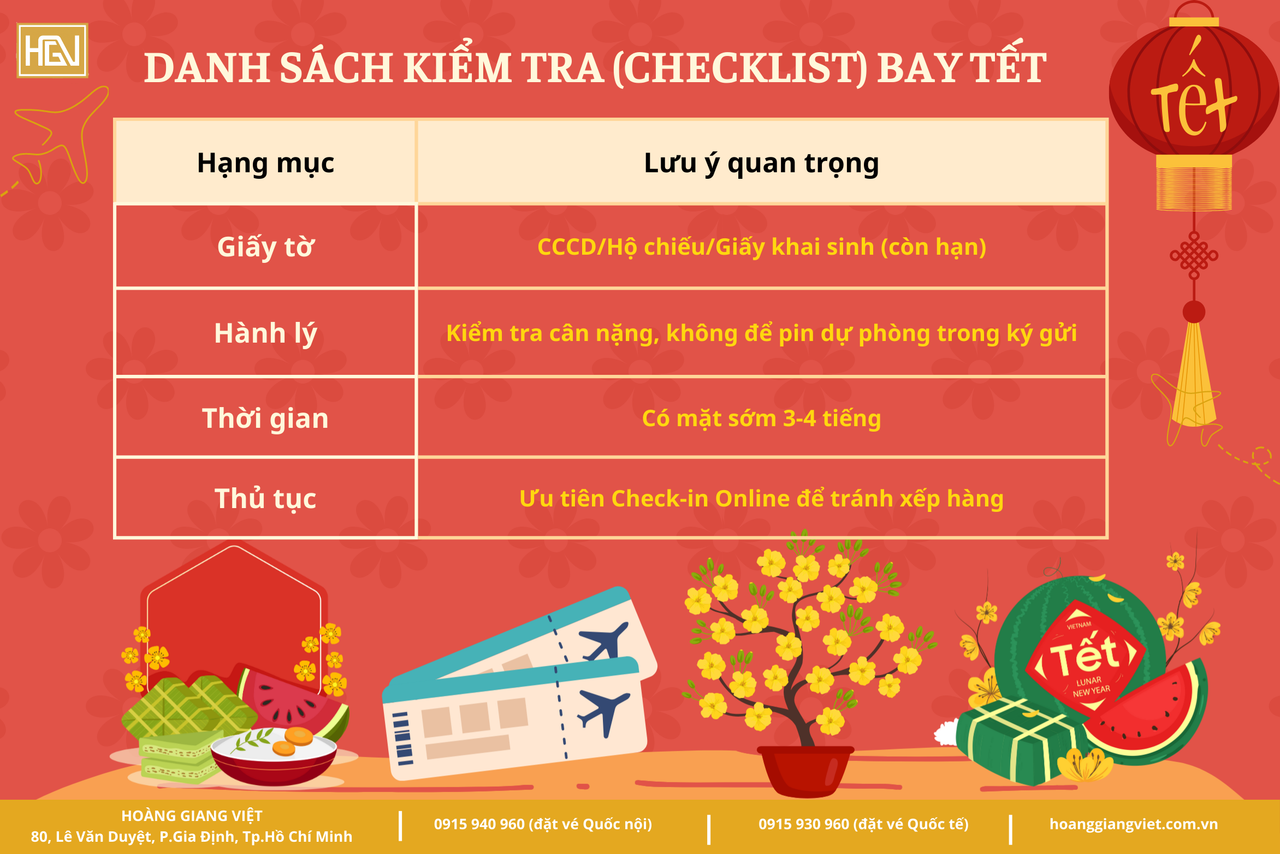 Tổng kết danh sách kiểm tra (Checklist) bay Tết: