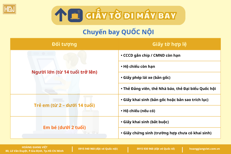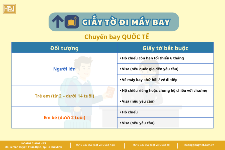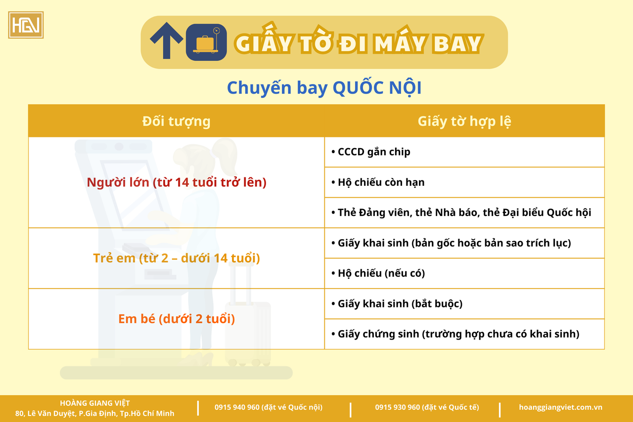 Bài viết dưới đây sẽ giúp bạn nắm rõ đầy đủ giấy tờ tùy thân khi đi máy bay cho chuyến bay quốc nội, quốc tế, áp dụng cho người lớn, trẻ em và em bé, cập nhật theo quy định hiện hành tại Việt Nam.