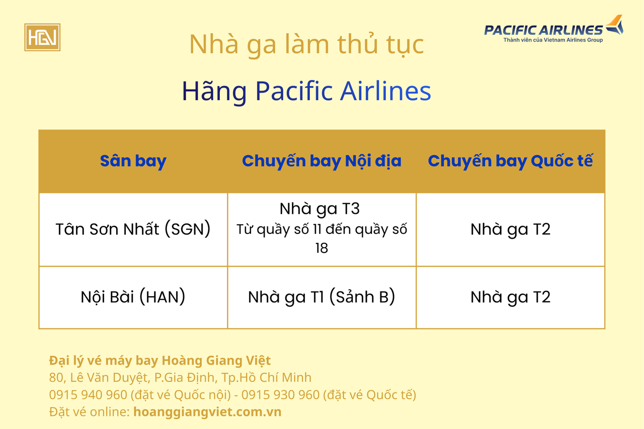 Bảng Tổng Kết Vị Trí Nhà Ga Pacific Airlines